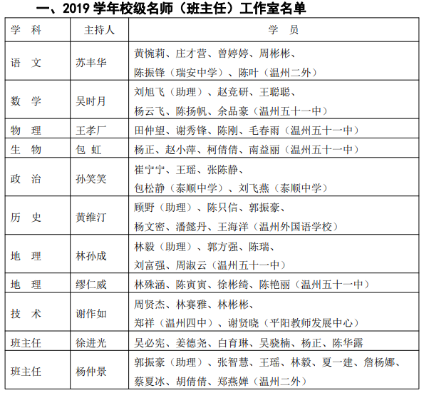 关于公布 2019 学年betway官网中文版校级名师(班主任)工作室暨师徒结对名单的通知