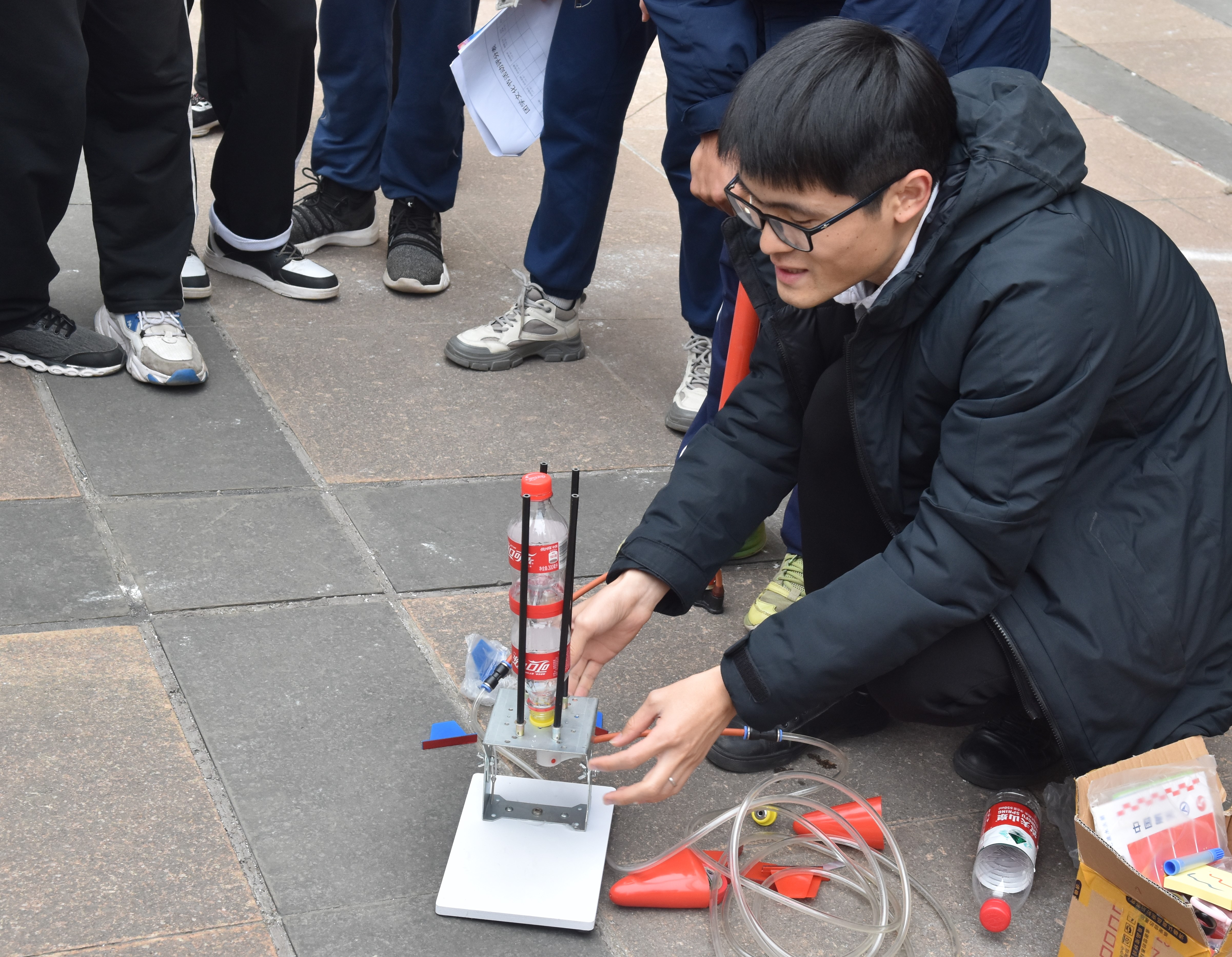 活动过程十分精彩,各种各样的水火箭在同学们的积极配合、完美合作中展示出来了。参赛选手看见自己做出来的作品,脸上洋溢着满意的笑容,满满的自豪感。