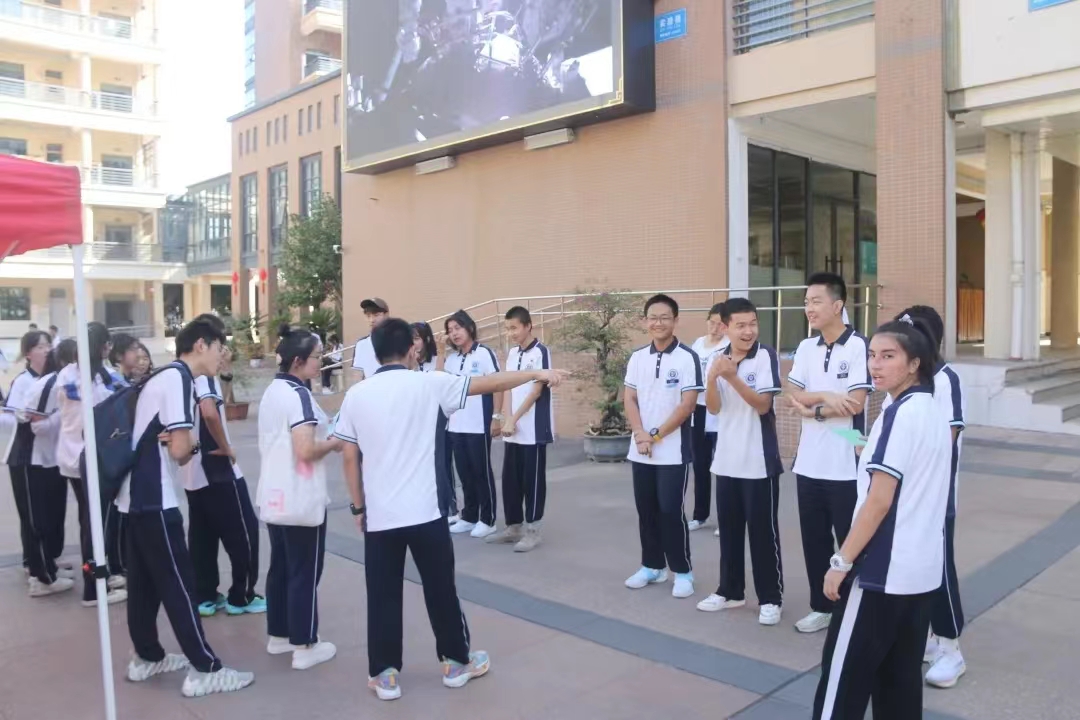10月2日上午8:30,新疆部内广场上“竞趣国庆,少年意气正当时”智力游园活动悄然拉开序幕。高一高二段全体学生参与了“反应力大考验”“齐心协力”“我们的默契”等八项智力游戏。同学们在一片欢笑声、抢答声中,锻炼脑力思维,体验团结协作的魅力。