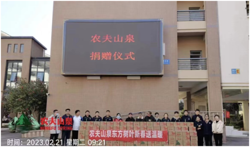 捐赠方温州市星童贸易有限公司,是一家从事食品销售、日用品销售、货物进出口等业务的公司。东方树叶则是农夫山泉公司最新出品的一款茶饮料,用农夫山泉泡制,主打0卡路里。星童贸易有限公司送温暖活动向新疆部学生捐赠东方树叶一千箱,共计15000瓶。此次爱心捐赠,让新疆部学生品尝到各种口味的茶饮料,备感来自企业的关怀,也充分体现了企业的高度社会责任感以及关注教育的高尚情怀。